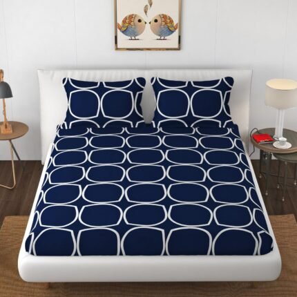 Navy Leaf Cotton Elastic Fitted king size Bedsheet with Pillow cover |by Home Collective