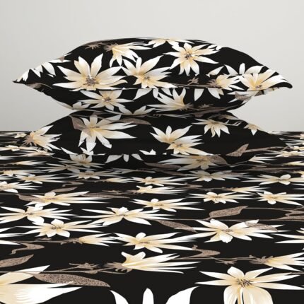 Black Premium Floral Cotton Printed Elastic Fitted Bedsheets with Pillow covers |by Home Collective