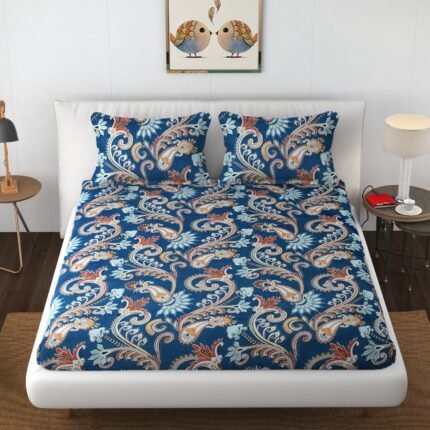 Blue Paisley Design Premium Cotton Fitted Bedsheets with Pillow covers |by Home Collective