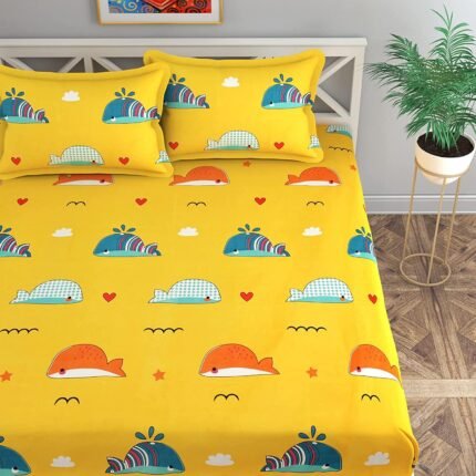 Kids Fish Character Printed Cotton Elastic Fitted King size Bedsheets with Pillow covers |by Home Collective